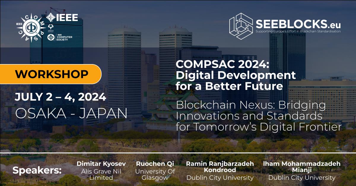 SEEBLOCKS.eu is organising the "Blockchain Nexus: Bridging Innovations and Standards for Tomorrow’s Digital Frontier" Workshop on July 3rd, during "COMPSAC 2024: Digital Development for a Better Future", in Osaka, Japan.